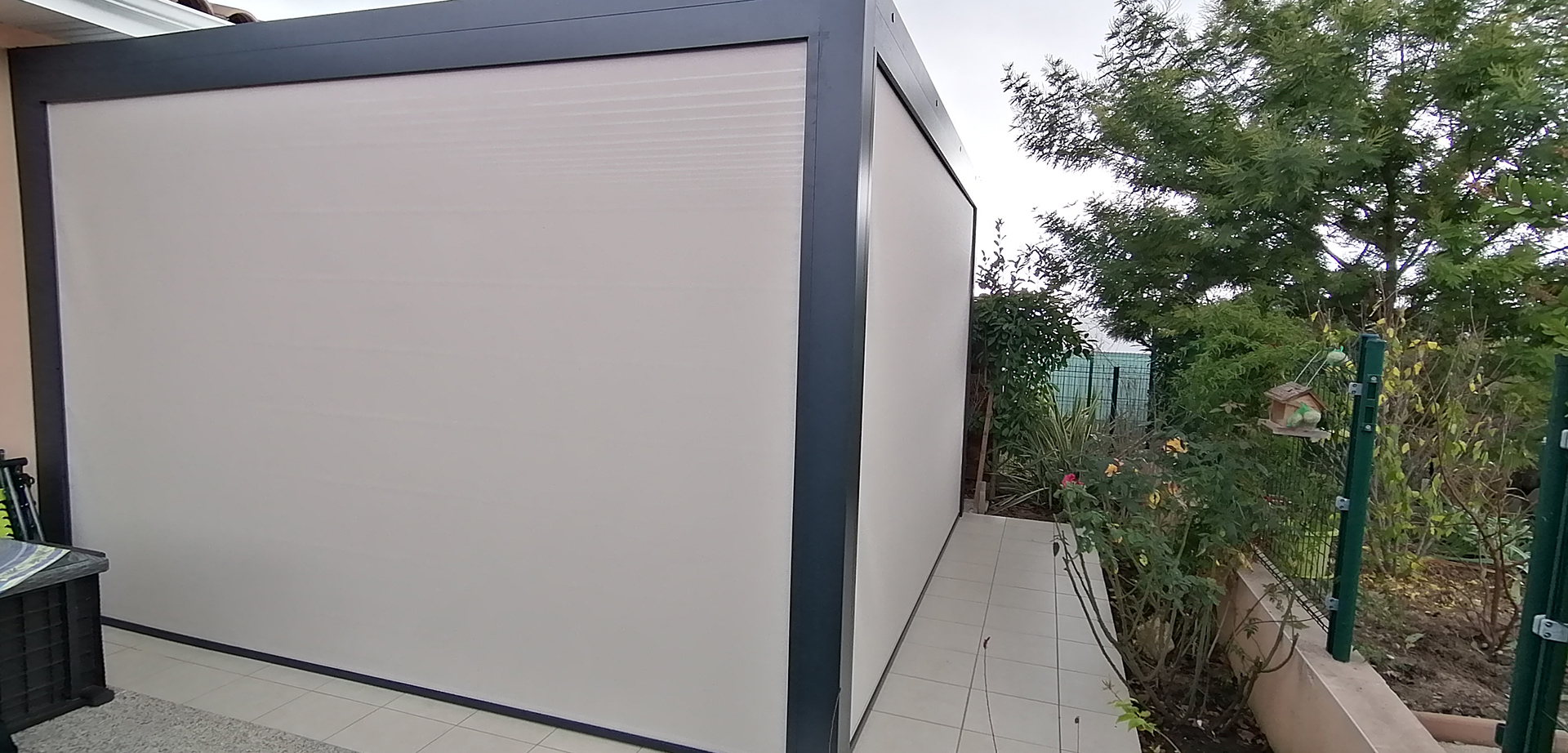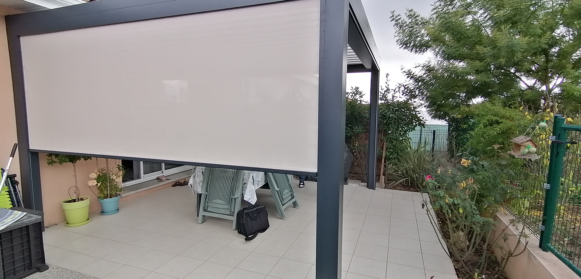 Pergolas et Stores — Store de côté fermé — Vu de l'intérieure