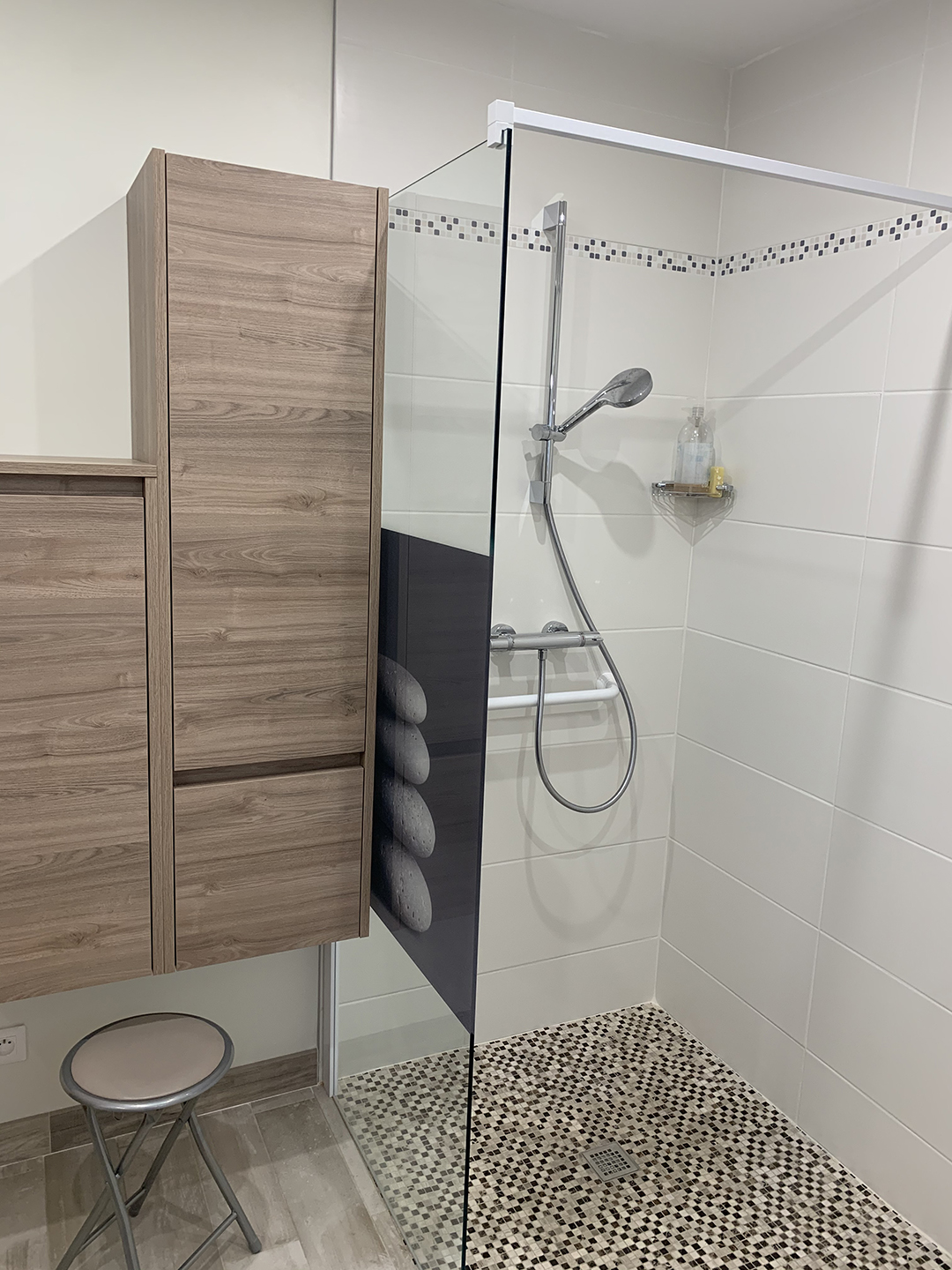 Cette salle de bain est mise aux normes PMR comme le souhaitaient nos clients.