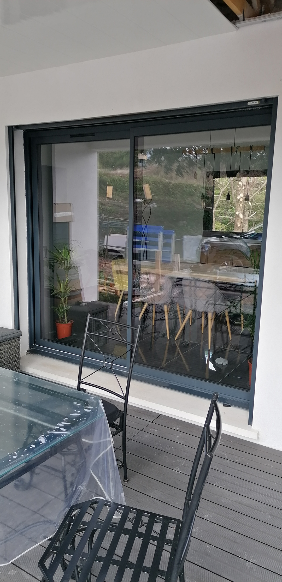Maisons neuves - Porte vitrée donnant sur la terrasse - Vue Intérieure Maisons neuves - Porte-fenêtre vitrée donnant sur la terrasse vue intérieure Maisons neuves — Fenêtre vitrée donnant sur la terrasse vue extérieure Maisons neuves — Porte-fenêtre vitrée donnant sur la terrasse vue extérieure Maisons neuves - Porte vitrée donnant sur la terrasse - Vue extérieure Maisons neuves — Arrière de la maison — Vue intérieure